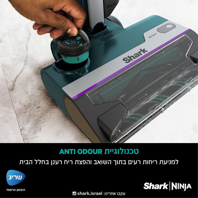טכנולוגיית -ANTI ODOUR מחסנית ריח המשמשת למניעת ריחות רעים בתוך השואב והפצת ריח רענן בחלל הבית.